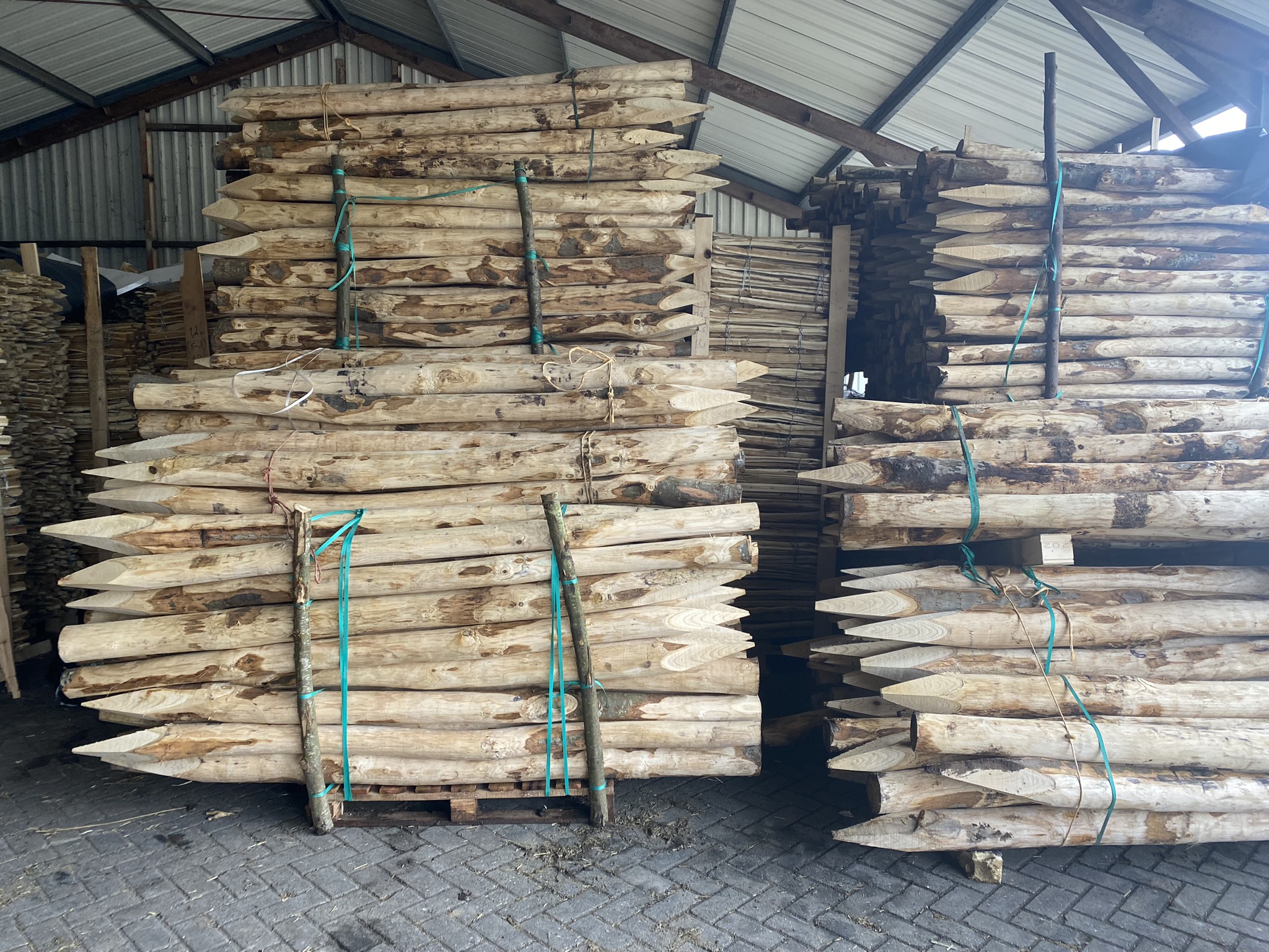 Iedere paal heeft zijn eigen unieke en landelijke vorm wat zorgt voor een robuuste uitstraling. Dit wil zeggen dat de palen nooit kaarsrecht zijn en krommingen kunnen bevatten. Kastanje palen zijn over het algemeen wat rechter dan robinia palen. De diktes van de palen die hierboven zijn weergegeven zijn gemeten aan de dunne zijde van de paal. Palen met een punt zijn aan de dikke zijde aangepunt waardoor ze langer meegaan in de grond.