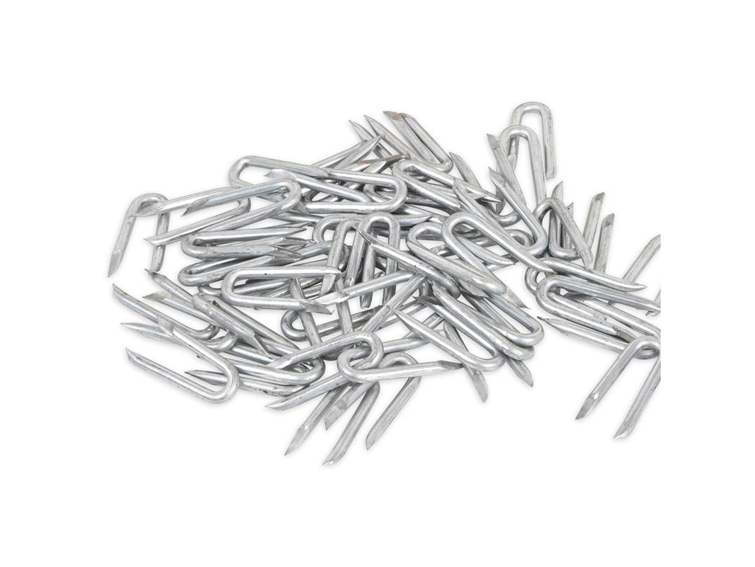 Met deze verzinkte krammen bevestigd u eenvoudig het schapengaas of kippengaas op houten palen. Dit kan op zowel robinia als kastanje palen.