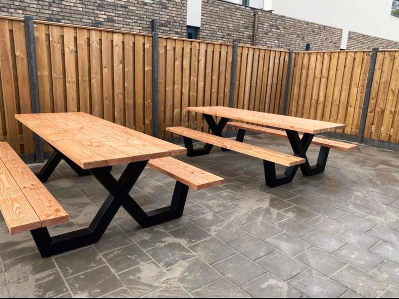 Naast het hekwerk, palen en poorten maken we ook deze robuuste picknicktafels voor in iedere tuin! Wilt u een nieuwe zit plek creëren of meer gasten aan een tafel kwijt met mooi weer? Dan is dit een leuke oplossing!